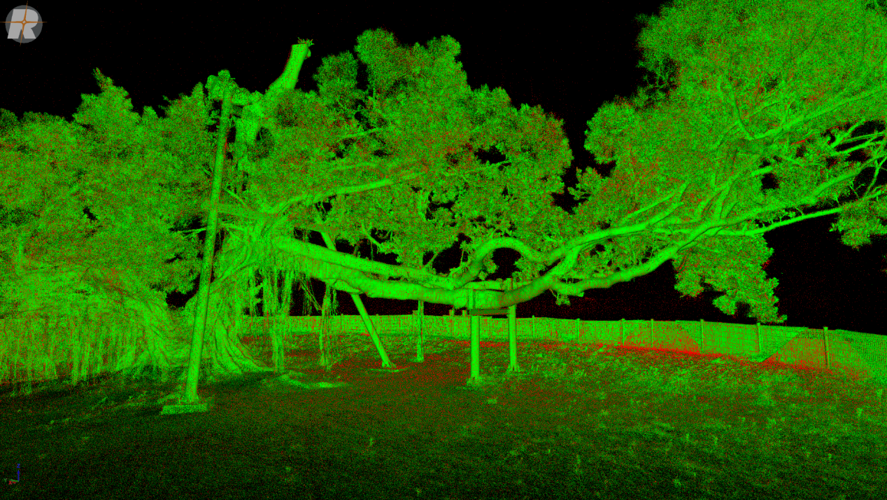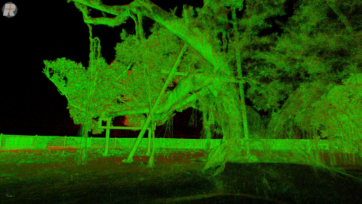 本次在成大榕園的實測結果,充分展現了RIEGL VZ-600i「地面掃描」的極限。透過動態掃描模式,測繪工作從傳統繁瑣的定點架設,演進為高機動性的連續採集,