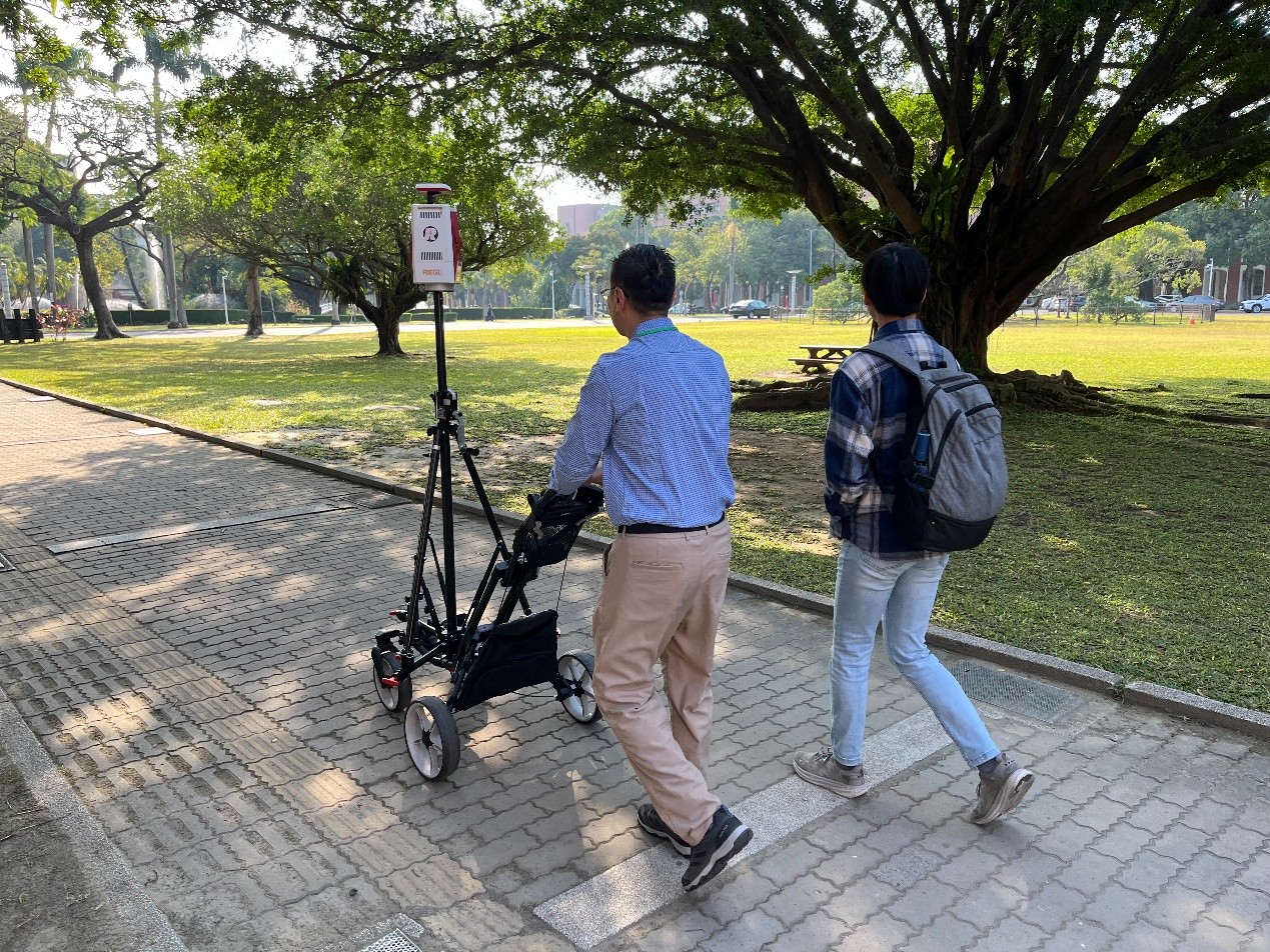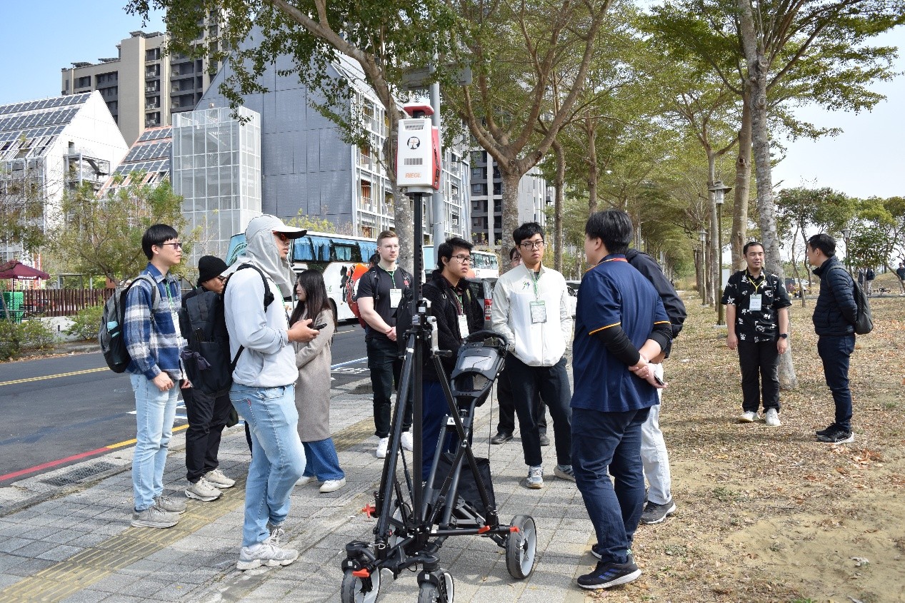 在第三天的外業課程中,迅聯光電準備了RIEGL VZ-600i地面掃描儀。除了一般的靜態模式(架站)掃描外,現場也示範了VZ-600i與眾不同且令人驚嘆的「動態掃描模式」。過RTK天線與內建的高精度IMU,並使用了最新的波形處理LiDAR技術,讓VZ-600i可以進行移動掃描,並在短時間內輕鬆完成大面積的高精度資料獲取。在第四天的團隊專案實作課程裡,有組員採用了RIEGL的方案,並掃描了成功大學裡榕園的樹木,透過實踐靜態掃描以及動態掃描的模式,進行兩者資料的比較。