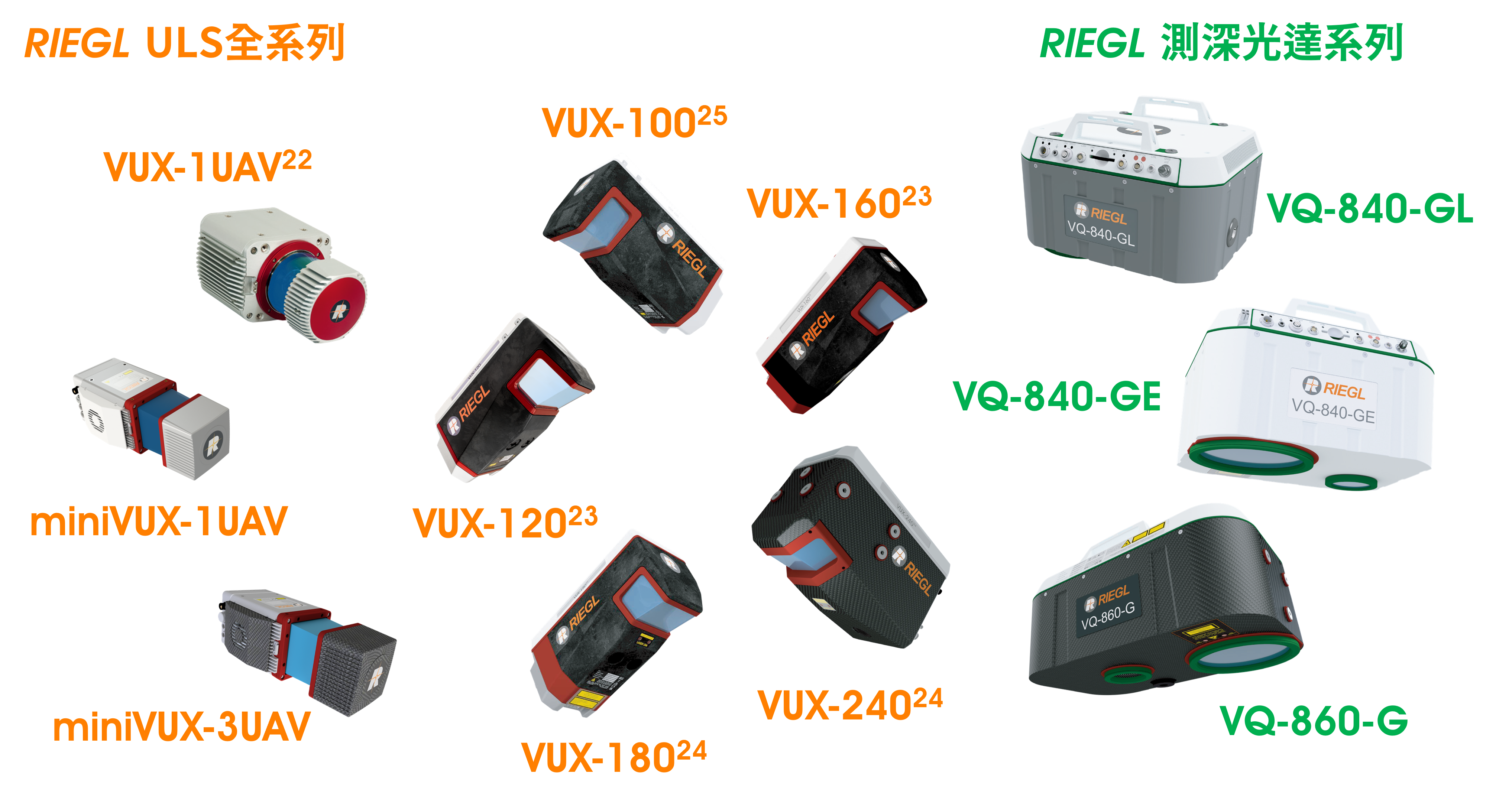 RIEGL 對於無人機載平台推出了專為基於UAV / UAS / RPAS應用開發的測量級機載掃描儀的系列,利用無人機載平台進行雷射掃描,可以在危險或難以到達的區域獲取資料,同時為多種應用,如精確農業、林業、古蹟考古、資源調查、礦業、電力管理、測量及都市計畫等提供精準快速的成果,並也使使用者可獲得極佳的成本效益比。