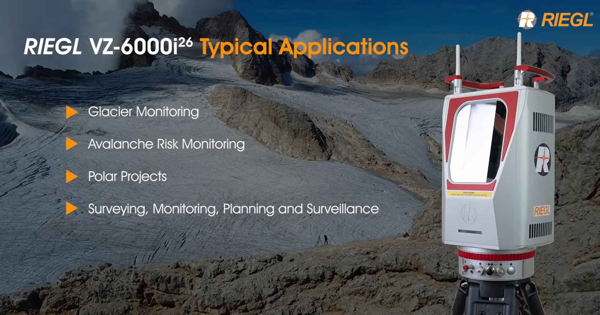 高達 6000 公尺的卓越遠端掃描效能,使其成為大規模冰雪測量應用的理想選擇。觀看此影片體驗 RIEGL VZ-6000i,並看看僅從五個位置掃描的巨大山脈和冰川的令人印象深刻的樣本資料。
