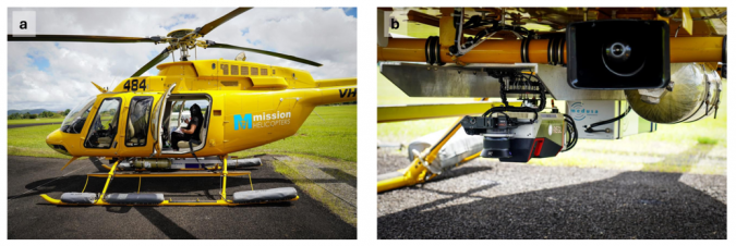 圖2:a) 配備RIEGL VUX-120掃描儀的BELL 407直升機;b) 英國公司Sylvera Ltd.